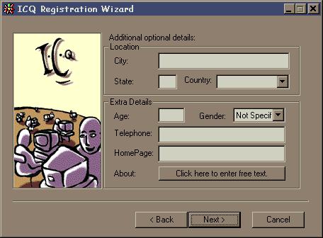 Den kan du hoppa över om du vill. Den är bara till för att skriva upp personer som kanske kommer att registrera sig på ICQ's server i framtiden.